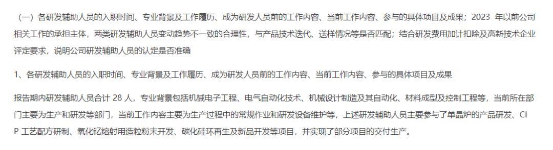 而据臻宝科技表示,研发辅助人员专业背景包括机械电子工程、电气自动化技术、机械设计制造及其自动化、材料成型及控制工程等,当前所在部门主要为生产和研发等部门,主要工作内容为生产过程中的常规作业和研发设备维护等。