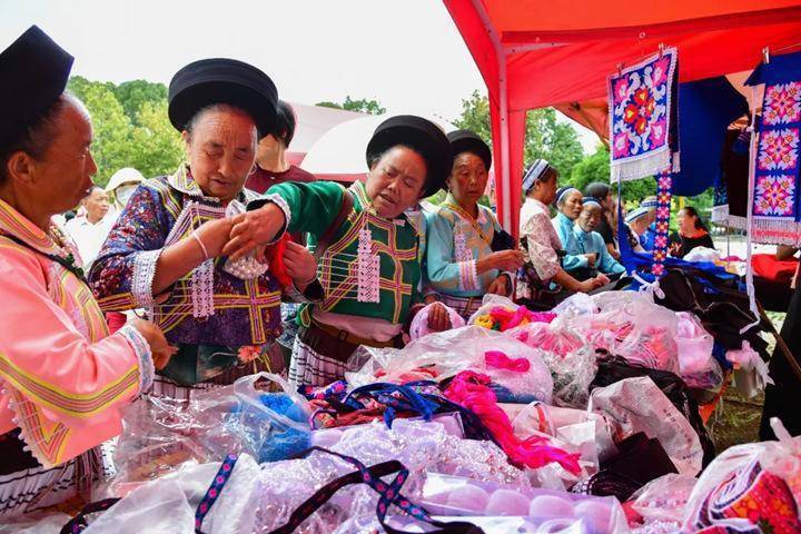 “姨妈”们对市集上售卖的服饰和挂件赞不绝口。