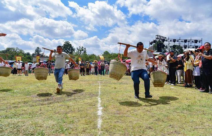 丰收接力挑担赛。