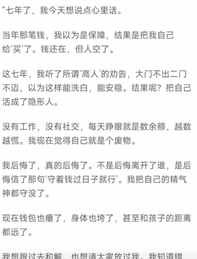 文中满是委屈与不甘,字里行间都在刻意卖惨,自曝自己如今的处境十分艰难。