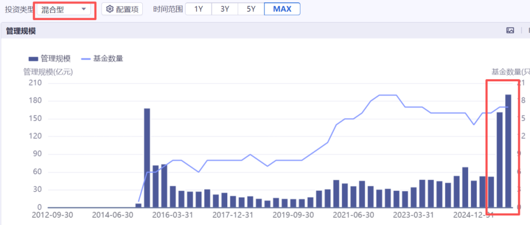 混合型方面,德邦基金在2025年发行了3只该类型基金,看似有进展,但这 3 只均为发起式基金,也就是说,成立时不受普通基金募资资金达到2亿元才能成立的条件限制。