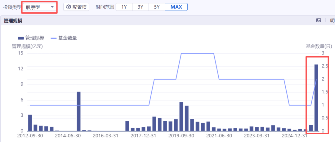 德邦基金虽然2012年已经成立,但同花顺iFinD显示,直到2025年二季度末,公司权益类产品(混合型和股票型)占比较低,当时占比不足10%,规模也就刚超50亿元,股票型规模甚至不足5000万元。
