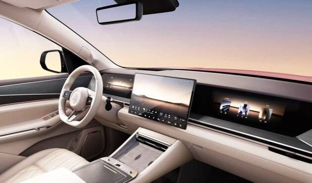 智能驾驶部分,顶配车型配备了激光雷达,车顶的凸起十分明显。销售人员演示时提到,“天神之眼B”系统在通过路口左转时,无需打灯,也毫不迟疑,能够自主识别红绿灯、礼让行人,并准确驶入辅路。云辇-A空气悬架并非摆设,在接近减速带前两秒,车身会微微降低,如同人提前弯膝般平稳。