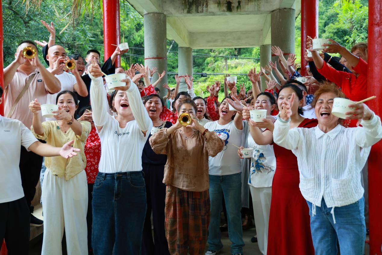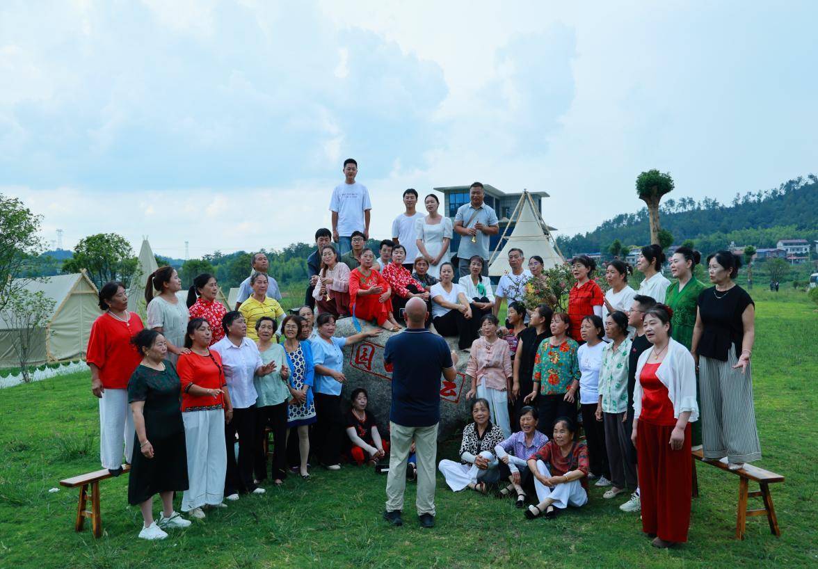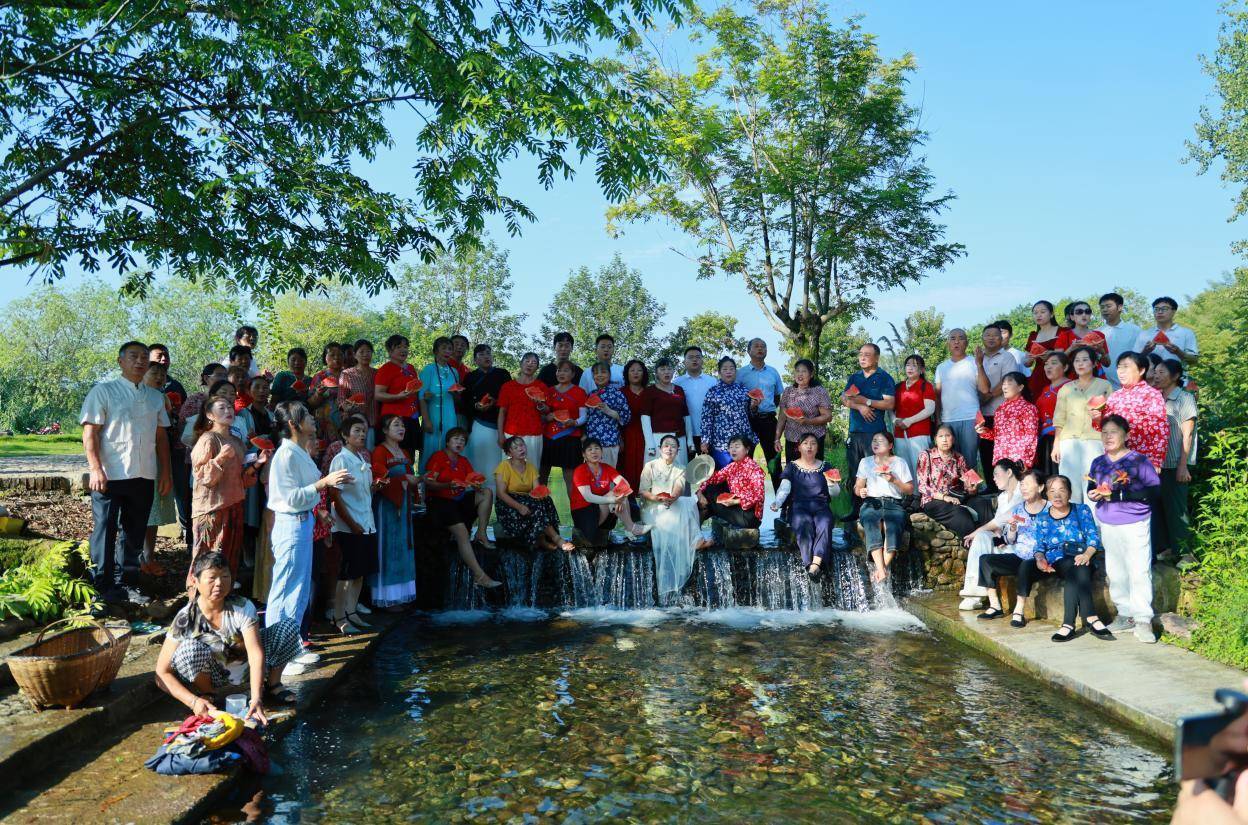 4日清晨,团队深入大幕山,灶背岩与冬瓜大包观景平台的晨雾金光,呼应“大幕山上披金霞”的歌词;革命旧址菖蒲塘前,15面红旗列阵,众人挥旗合唱“菖蒲塘上,星星之火,映山红”,重温革命记忆。午后,仙女湖畔波光粼粼、云栖田园绿意盎然,众人齐唱“绿水青山就是金山银山”,传递时代心声。